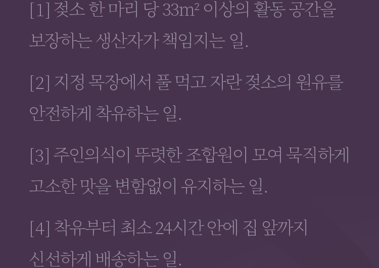 내용을 클릭해 컬리스 동물복지 우유의 기준을 사진으로 확인해보세요.